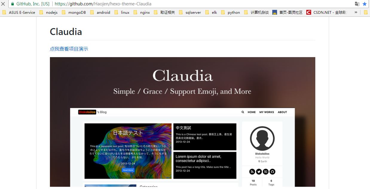 cd d:/hexogit clone https://github.com/Haojen/hexo-theme-Claudia themes/Claudia